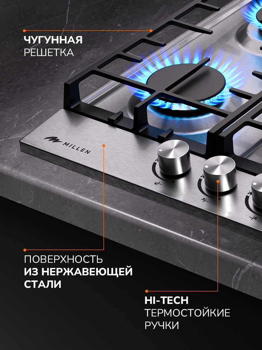Газовая варочная панель MGH 452 IX с четырьмя зонами нагрева станет идеальным выбором для любой современной кухни. Устройство удобно в эксплуатации и позволяет приготовить блюдо любой сложности в домашних условиях. Все конструкционные элементы произведены из высококачественных материалов премиального класса. Чугунные решетки устойчивы к механическим повреждениям и не восприимчивы к высоким температурам.