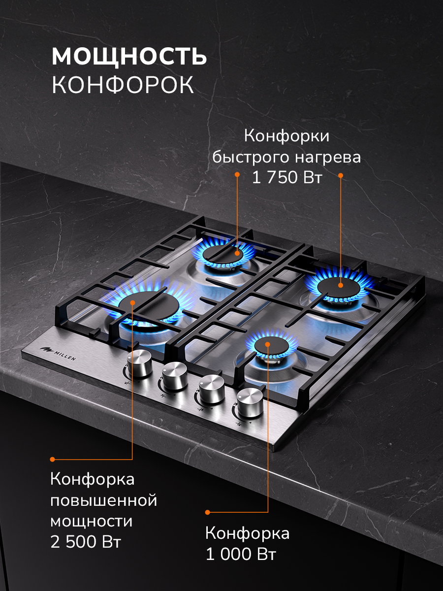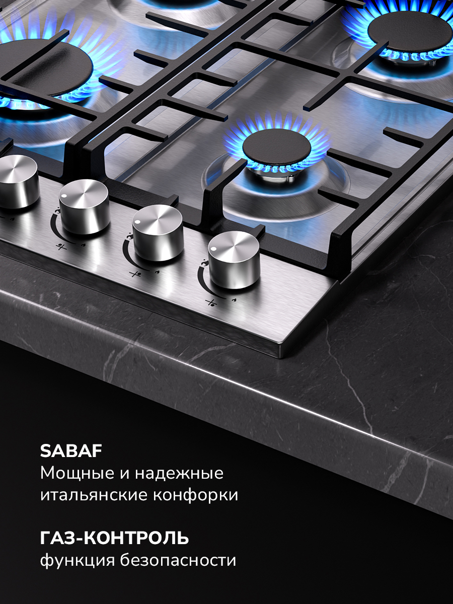 Наличие четырех конфорок позволяет не ограничивать свои кулинарные фантазии и воплощать их в реальность. Расстояния между ними достаточно, чтобы размещать на поверхности варочной панели посуду любых объемов и одновременно готовить сразу на нескольких конфорках. В комплекте дополнительно идет набор жиклеров, позволяющий подключать панель от газового баллона.
