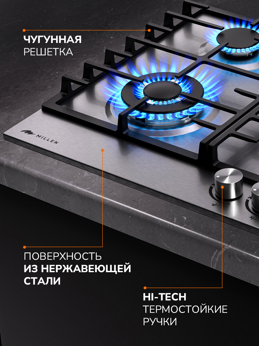 Газовая варочная панель MGH 601 IX премиального класса с автоматическим розжигом позволит приготовить блюдо любой сложности в домашних условиях. Все конструкционные элементы выполнены из экологически безопасных и надежных материалов. Управление осуществляется с помощью термоустойчивых переключателей механического типа. Для подачи газа и искры, необходимо утопить ручку и повернуть в требуемое положение.