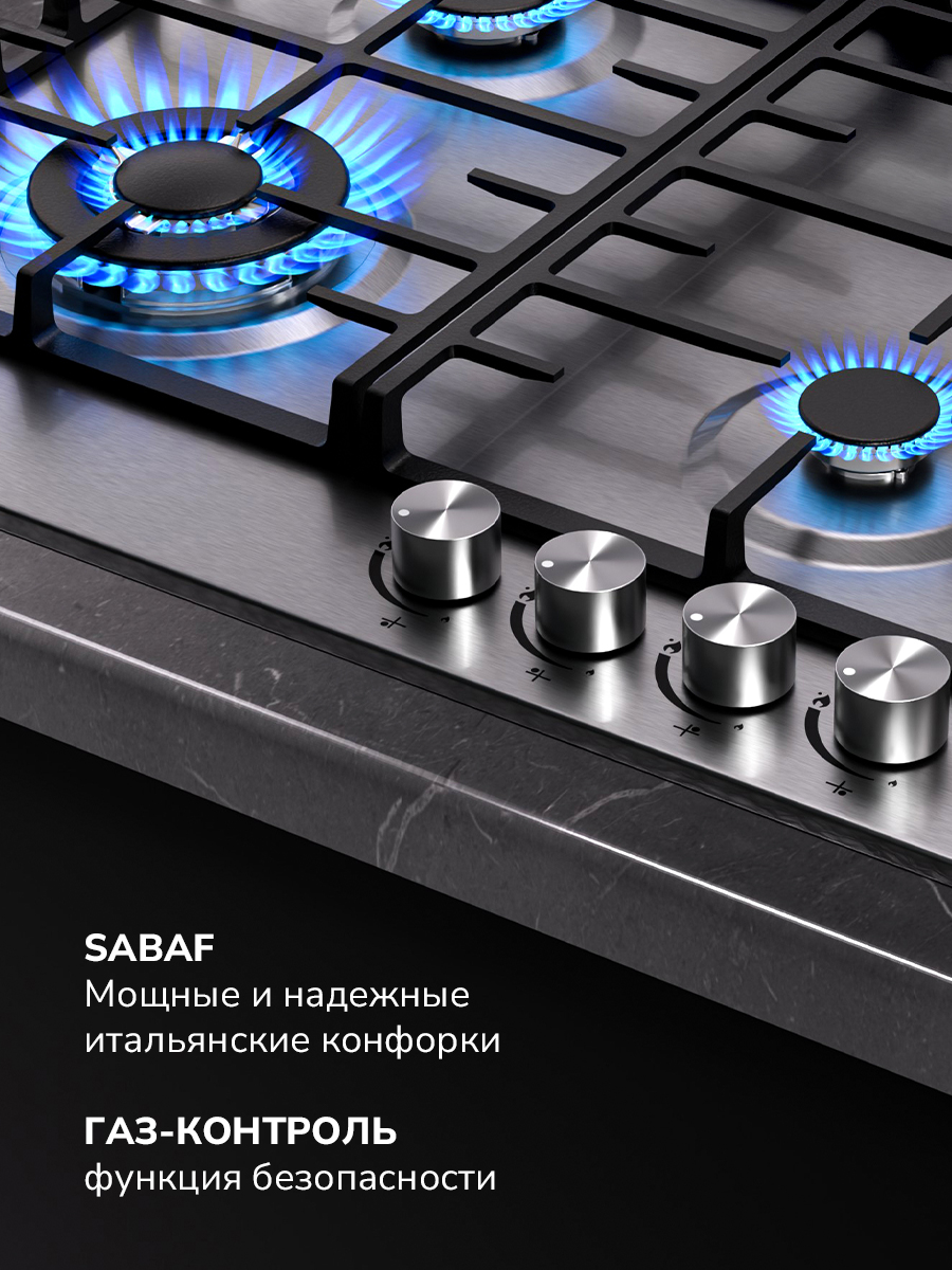 | Тип конфорок | Итальянские газовые клапаны SABAF |