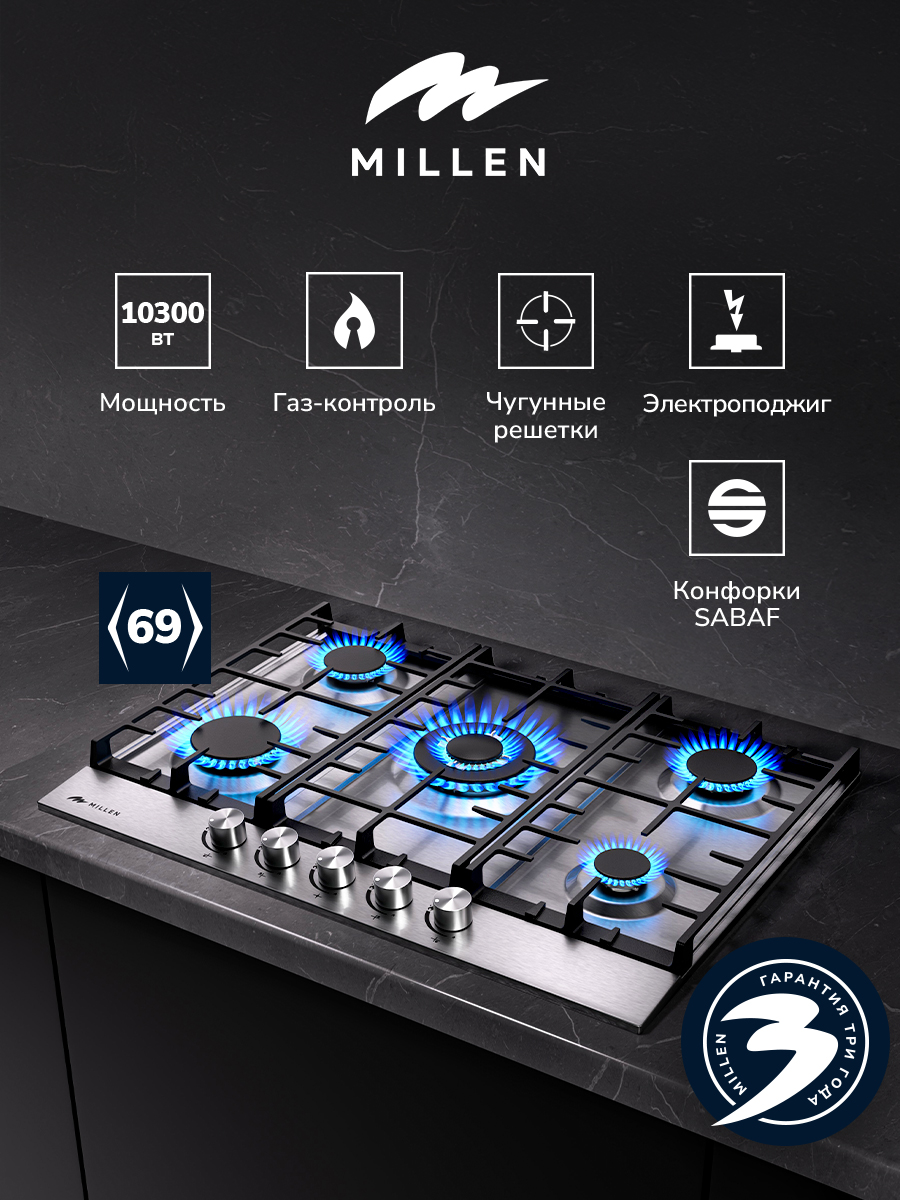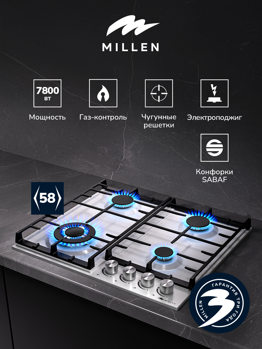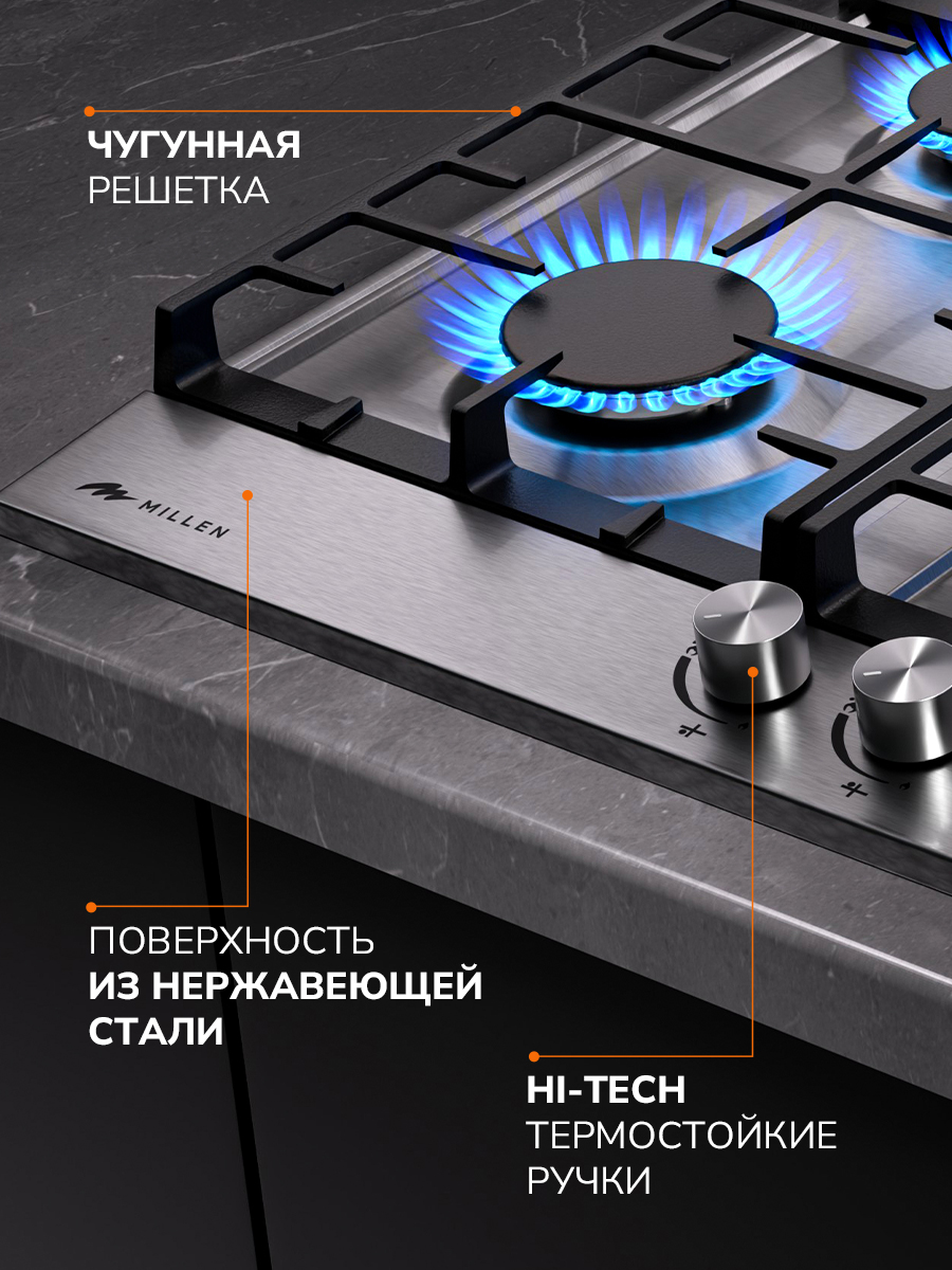 Если пламя случайно погаснет, то сработает защита, подача газа будет остановлена автоматически. Встроенная функция автоматического розжига позволяет быстро включать газовые горелки одним поворотом переключателя, делая эксплуатацию устройства еще комфортнее.