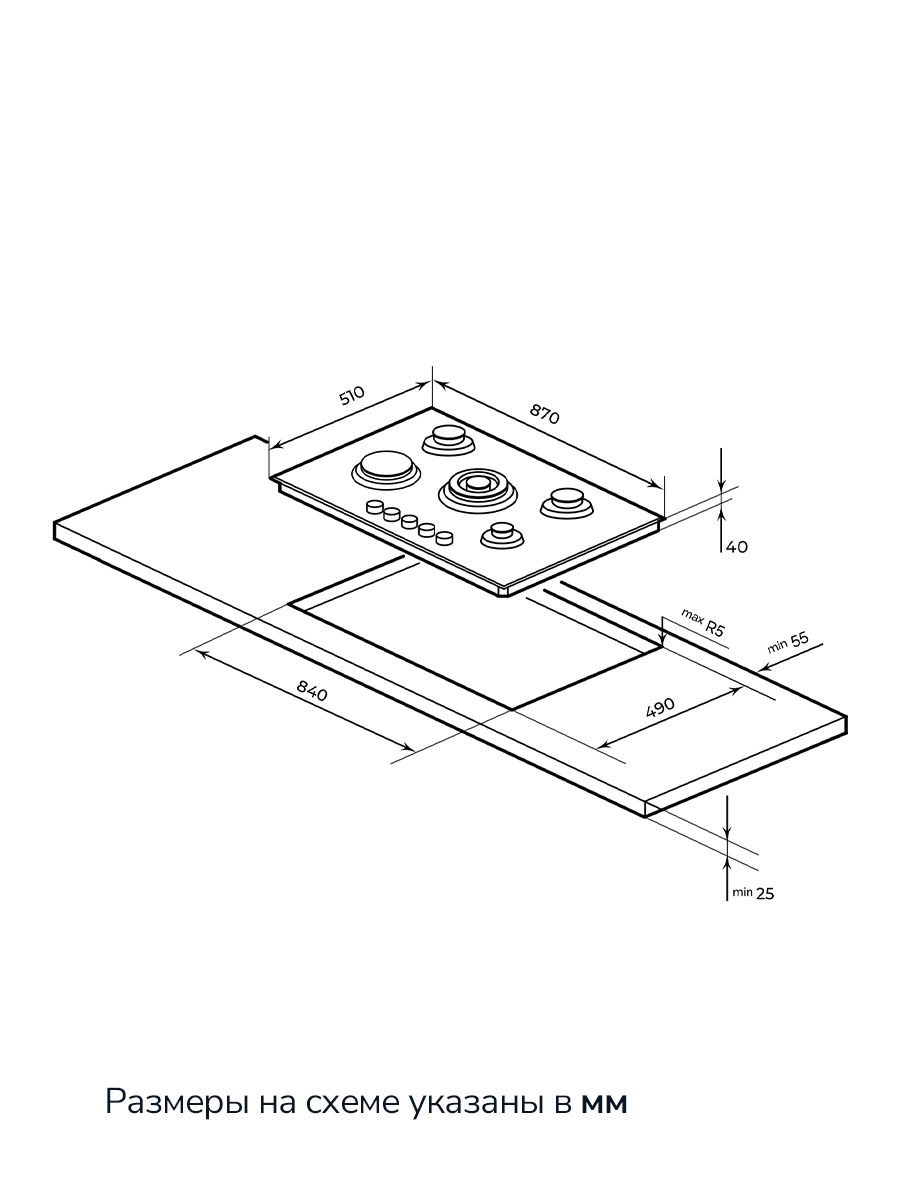 | Размер для встраивания | 840х490 мм |