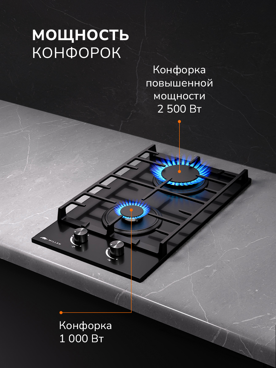 Встраиваемая варочная панель MGHG 301 BL с газовым подключением отличается небольшими габаритами и хорошей функциональностью. Идеальное решение для небольшой кухни. Допускается работа с газовым баллоном. В комплекте есть все необходимые жиклеры для подключения. Пользователю будет доступно две рабочих зоны с достаточным расстоянием между ними. Можно одновременно готовить на двух имеющихся конфорках, места хватит.