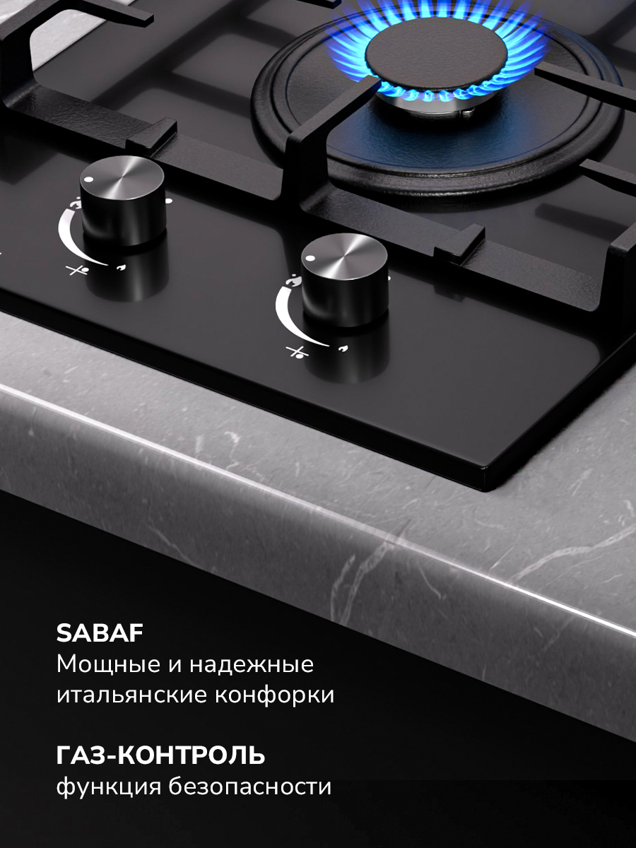 Оригинальный дизайн чугунных решеток придают эстетичный внешний вид изделию. Они хорошо держатся на поверхности, не скользят и способны переносить любые температуры в процессе приготовления. Газовая панель относится к встраиваемым электроприборам третьего класса защиты по стандарту EN 30-1-1, что делает эксплуатацию устройства максимально безопасным.