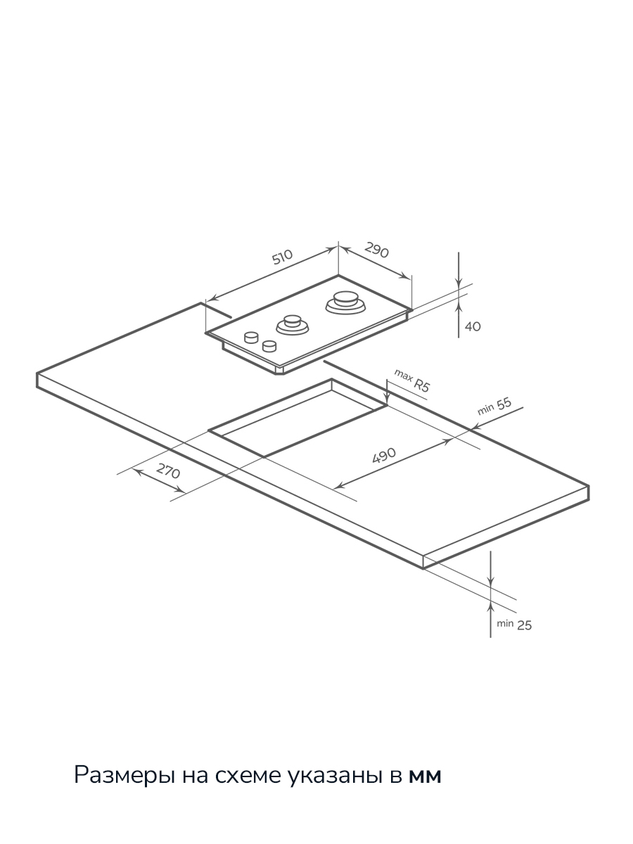 | Размер для встраивания | 270х490 мм |