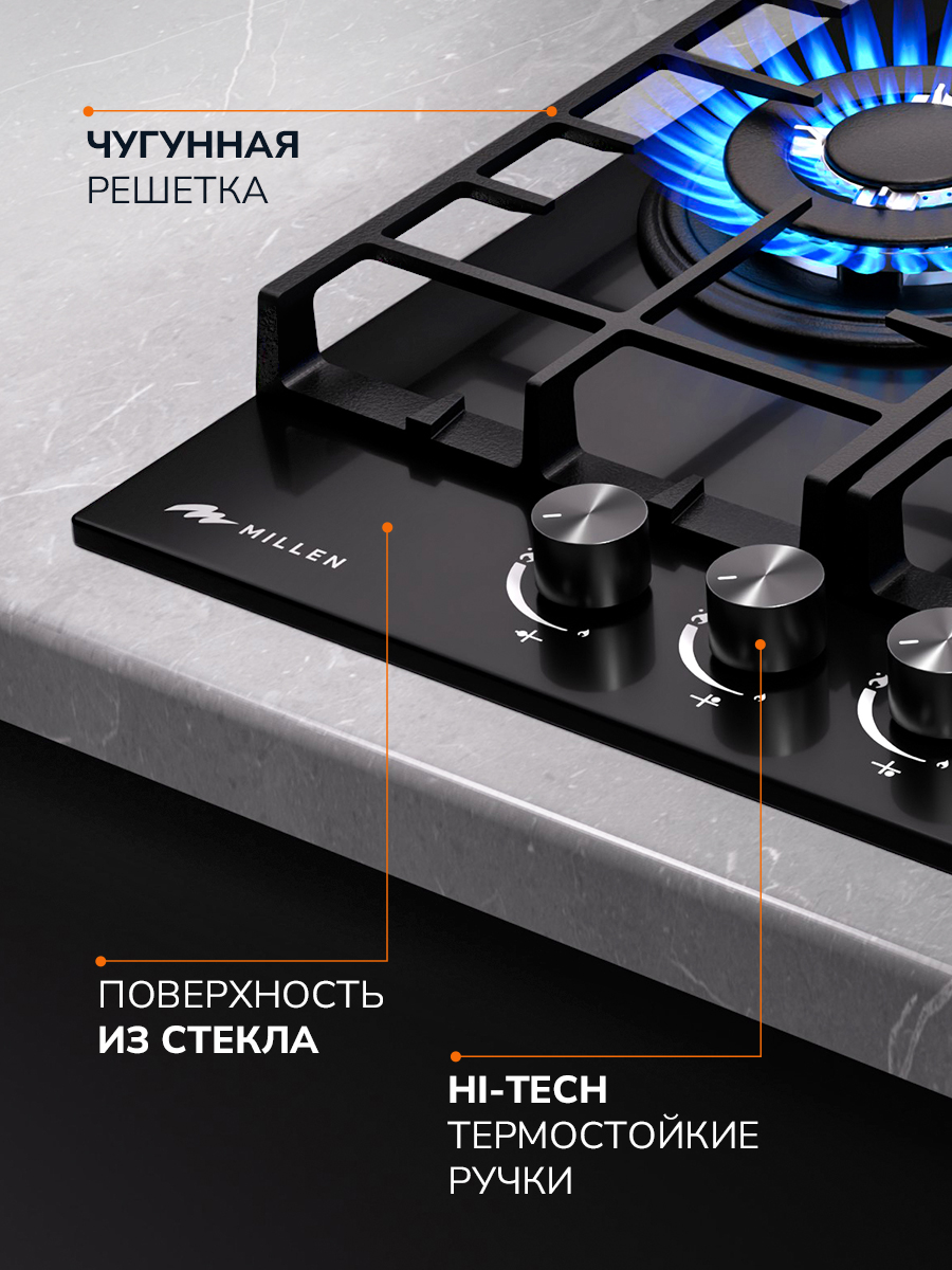 Стильная варочная панель MGHG 451 BL черного цвета идеально впишется в интерьер любой современной кухни и станет незаменимым помощником в приготовлении любимых блюд. Все конструкционные элементы изготовлены из экологически безопасных материалов премиального класса. Наличие автоматического розжига существенно упрощает эксплуатацию изделия, позволяя включать газовые горелки одним поворотом переключателя.