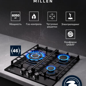Стильная варочная панель MGHG 451 BL черного цвета идеально впишется в интерьер любой современной кухни и станет незаменимым помощником в приготовлении любимых блюд. Все конструкционные элементы изготовлены из экологически безопасных материалов премиального класса. Наличие автоматического розжига существенно упрощает эксплуатацию изделия, позволяя включать газовые горелки одним поворотом переключателя.