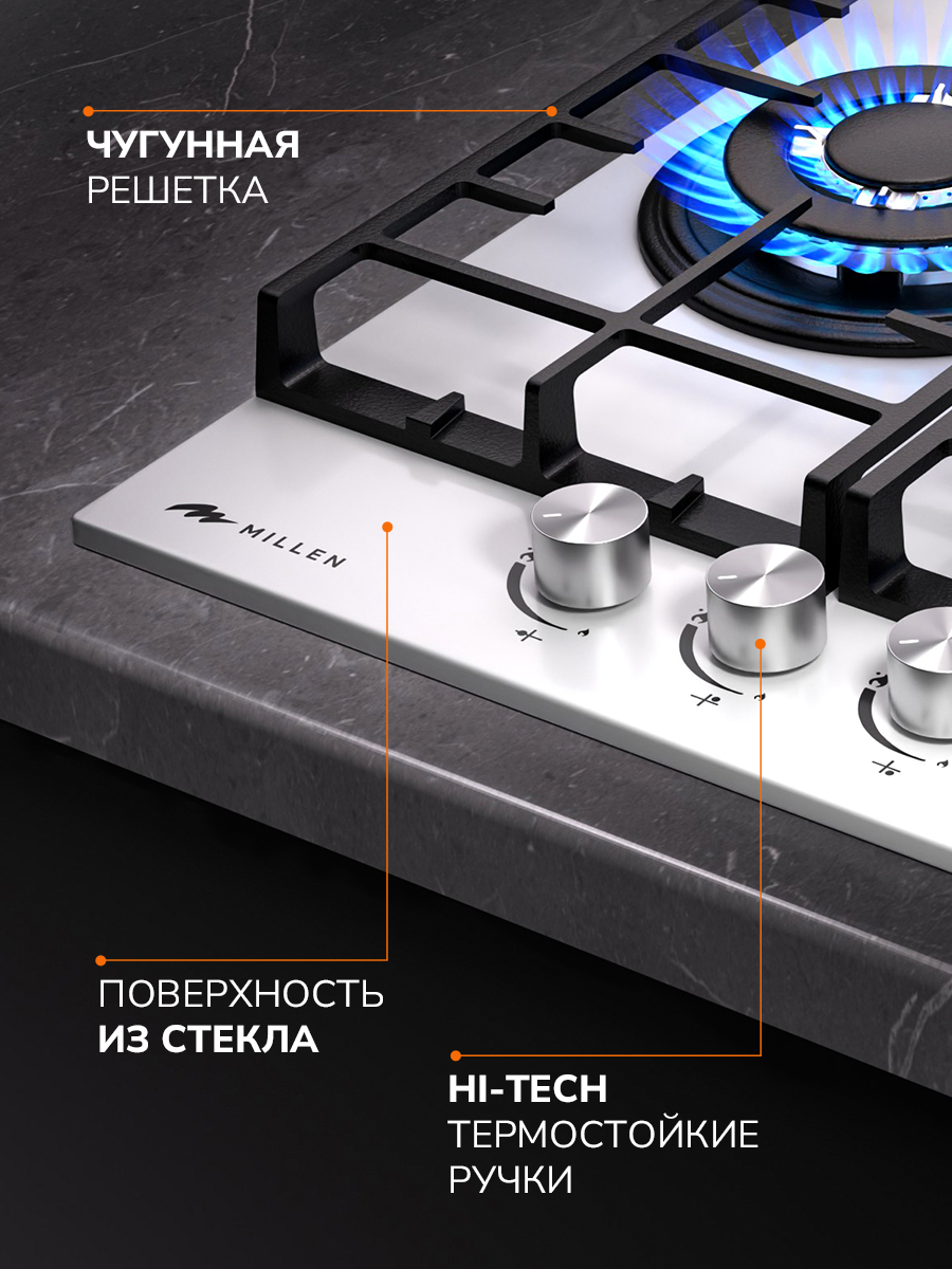 Газовая варочная панель MGHG 451 WH станет незаменимым устройством на любой современной кухне. Сочетание интуитивно понятного управления, удобства эксплуатации и многофункциональности делают изделие лучшим помощником при приготовлении блюд любой сложности. При производстве изделия используются высококачественные материалы премиального класса, что положительно сказывается на общем сроке службы изделия.