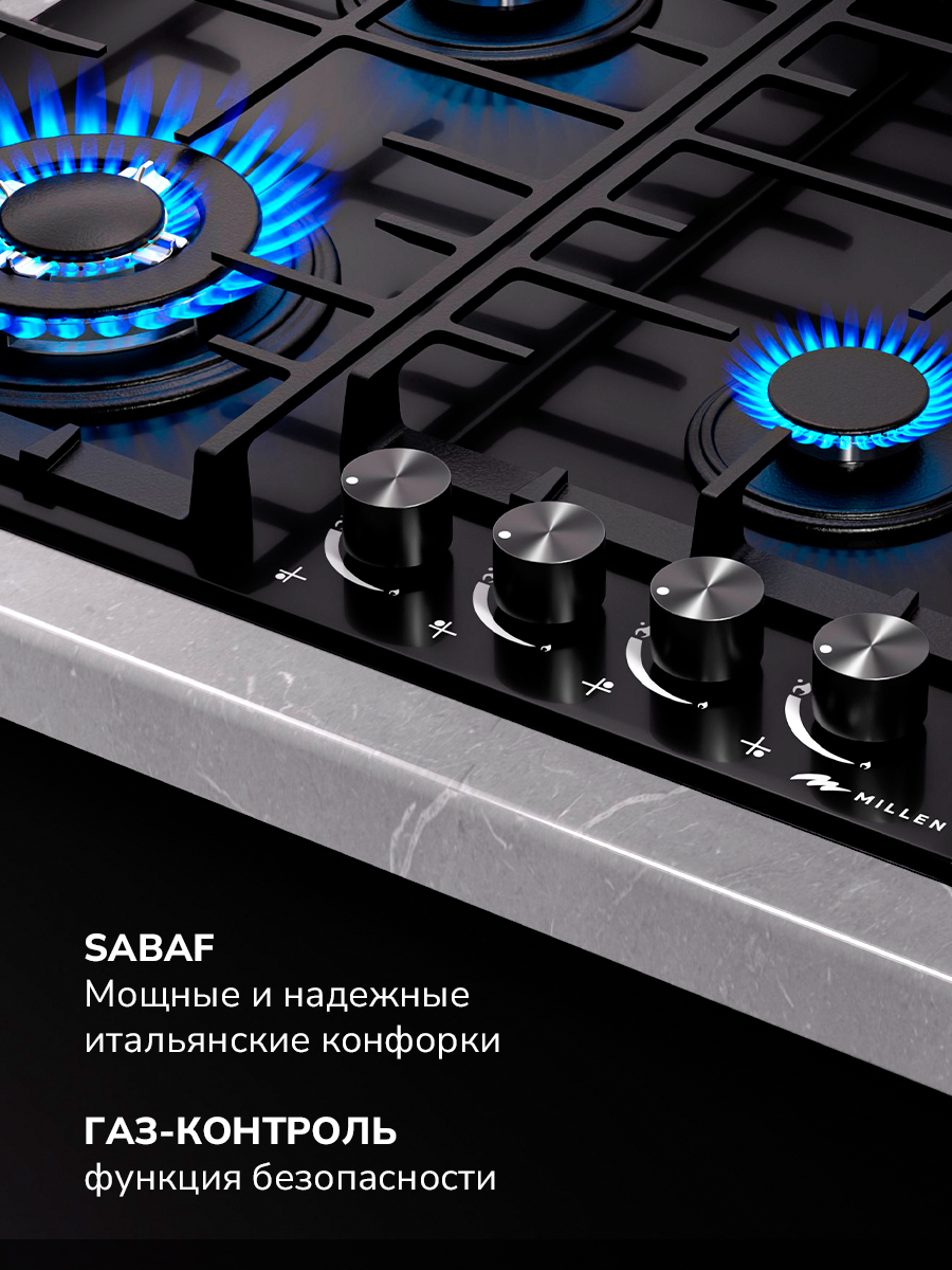 Черная газовая варочная панель MGHG 602 BL выделяется своим строгим и стильным дизайном. Все элементы, включая удобные термоустойчивые ручки регулировки подачи газа, окрашены в черный цвет. Эта особенность делает устройство идеальным для установки на кухне, интерьер которой оформлен в темных тонах. Конструкционные элементы произведены из экологически безопасных и надежных материалов под тщательным контролем.